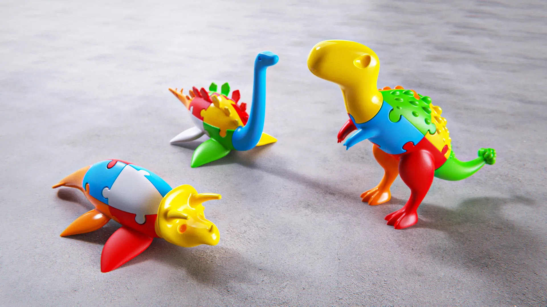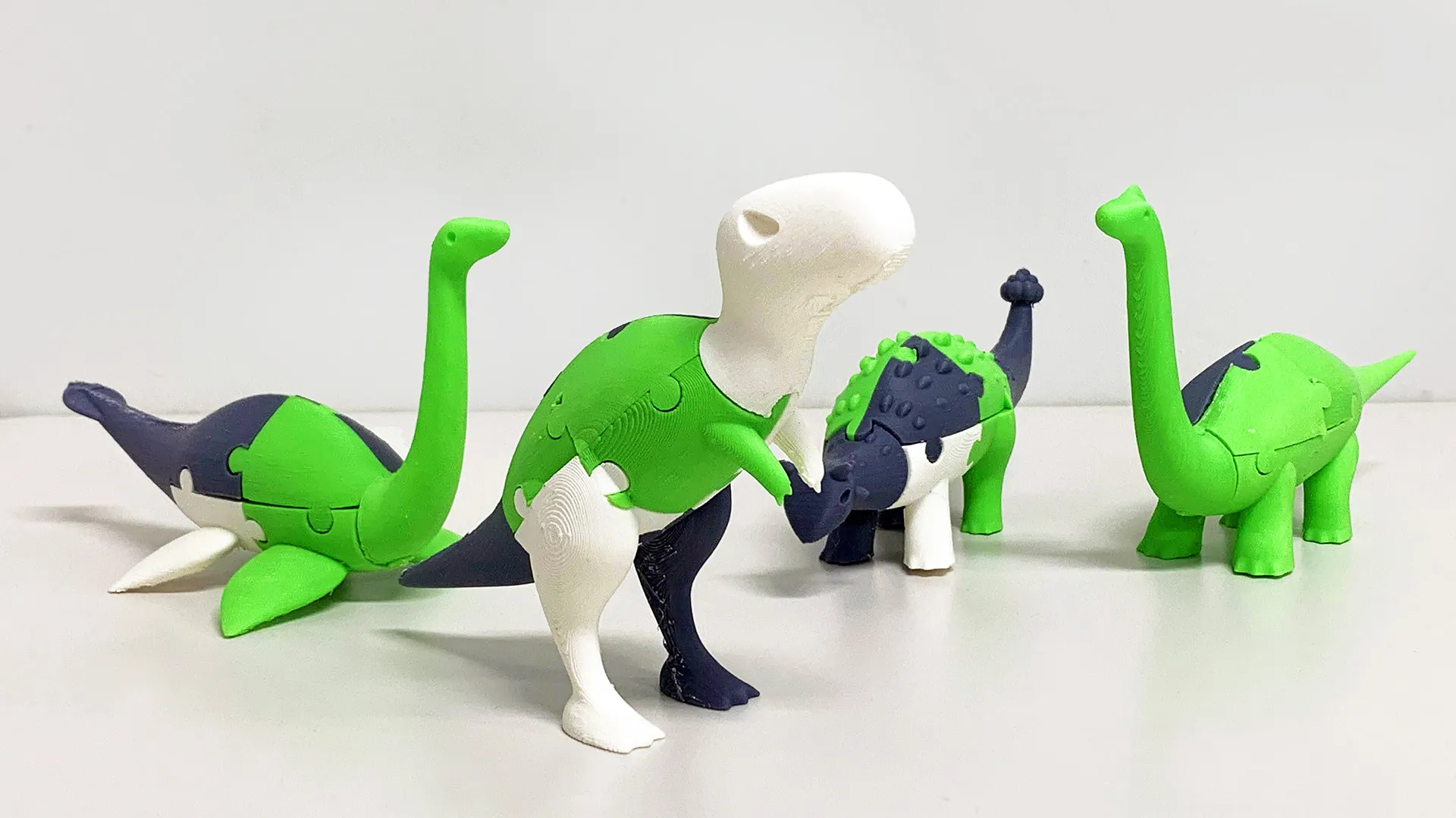 플러스플라스틱이 직접 기획, 디자인한 3D 퍼즐 블록으로 3D프린팅을 이용하여 블록을 출력하여 여러 공룡을 조합할 수 있는 3D퍼즐 블록이다. 티라노사우르스, 트리케라톱스 등 5종의 공룡을 기본형으로 서로 교차 조립하여 기본형과 다른 변형된 공룡으로 형상을 조합할 수 있다. These 3D puzzle blocks, envisioned and designed by PlusPlastic, let you 3D print and build a prehistoric world. Start with five basic dinosaur models like Tyrannosaurus and Triceratops, then explore endless possibilities by cross-assembling parts to create your own unique hybrid dinosaurs.