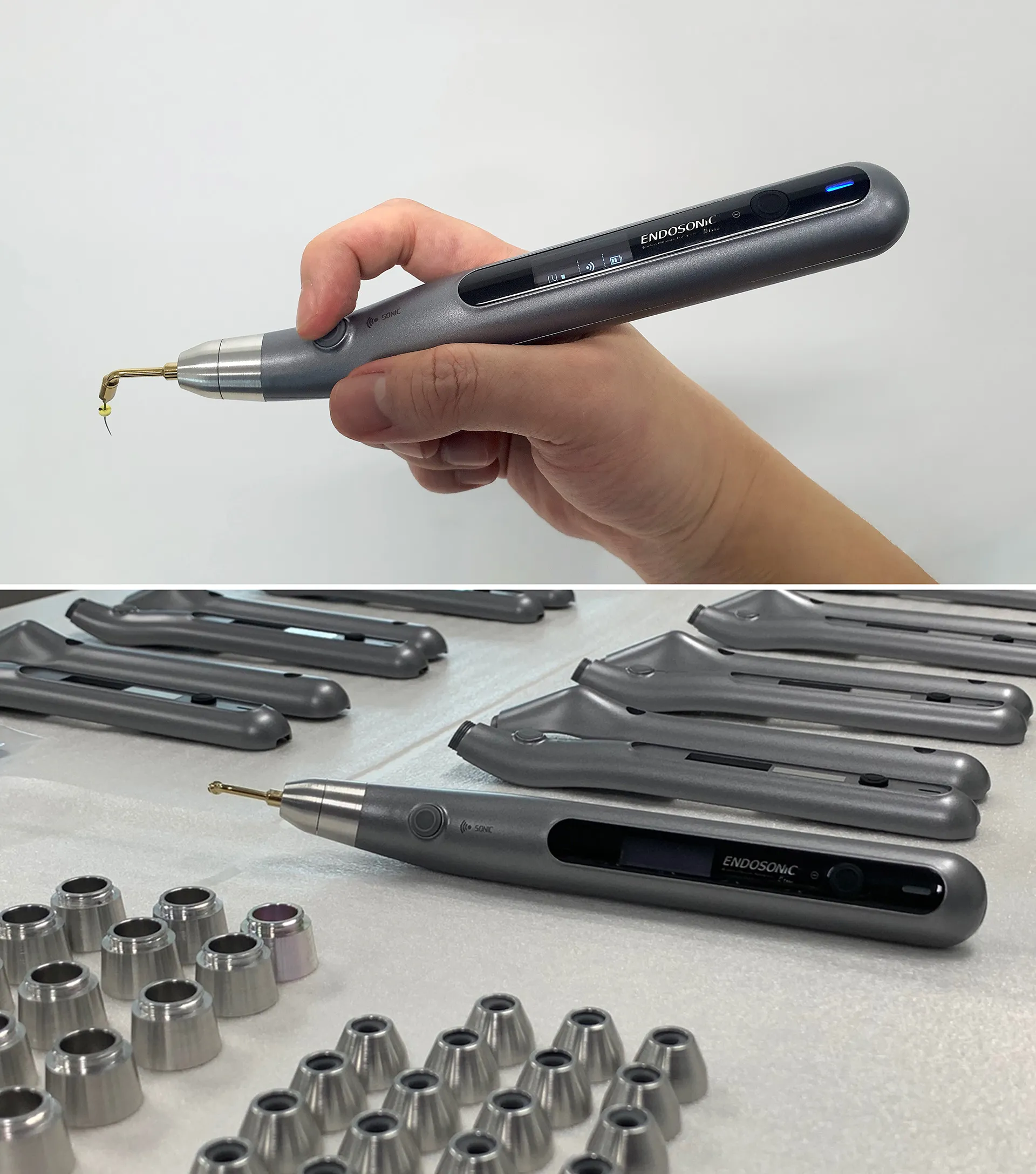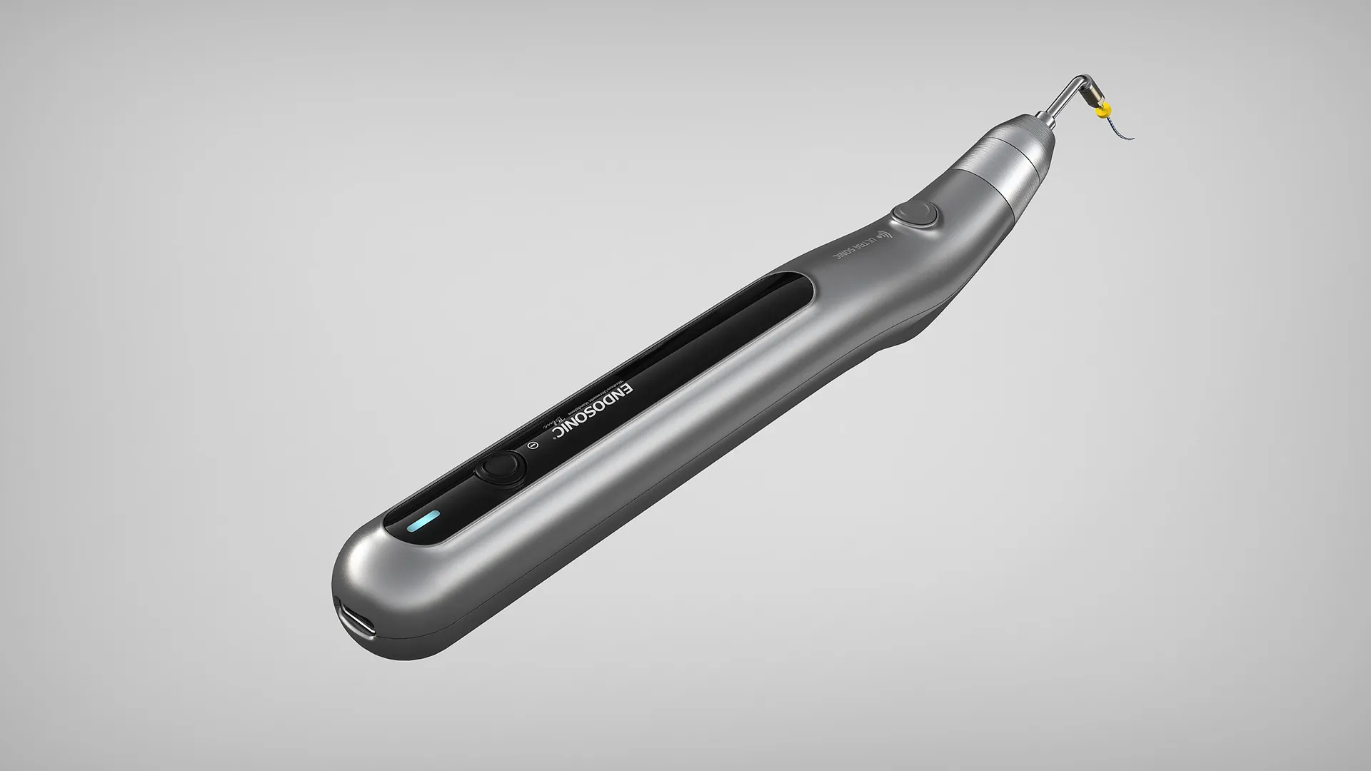 치과 재료 전문 기업인 MARUCHI에서 개발한 치근관 초음파 세정기기로, 치근관 치료(신경 치료) 시 근관 형성 과정에서 발생한 치수 잔사, 괴사 조직, 박테리아를 세정할 때 사용한다. 구강 깊숙이 시술부가 들어가기 때문에 가용한 최소치의 두께로 시술부를 설계하였으며, 라인을 활용한 디자인으로 파지부의 부피를 줄여 그립감을 향상시켰다. An ultrasonic root canal cleaner developed by MARUCHI, a company specializing in dental materials. It is used during root canal therapy (nerve treatment) to clean pulp debris, necrotic tissue, and bacteria generated during the canal shaping process. Because the treatment area is inserted deep into the oral cavity, the procedural tip was designed with the minimum possible thickness, and the grip was improved by reducing the volume of the handle through a line-based design.
