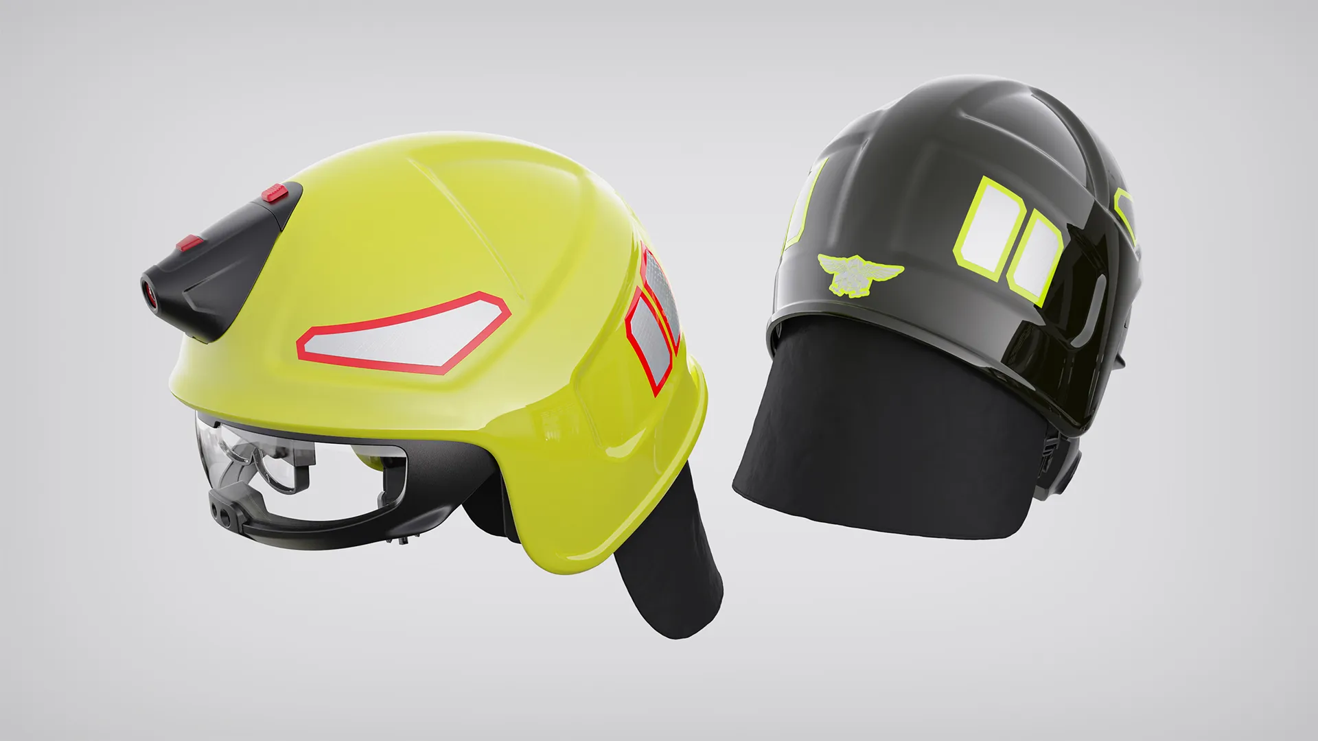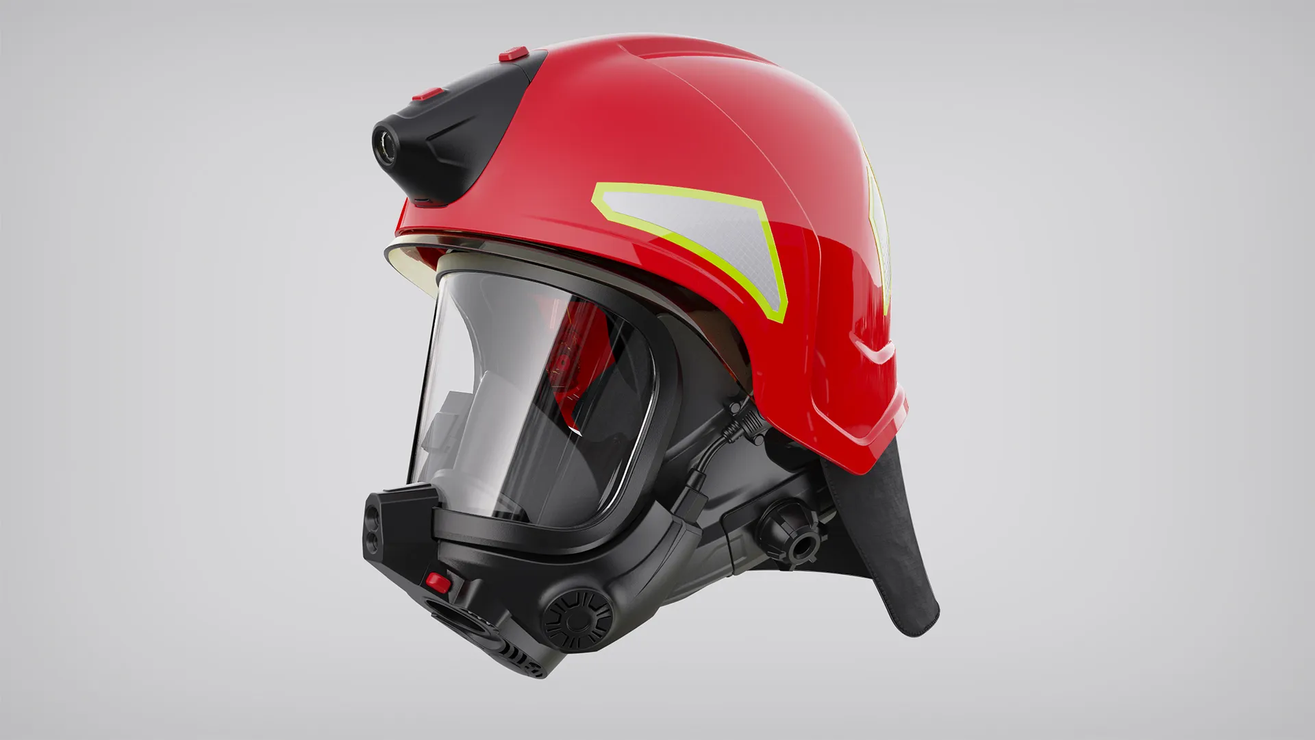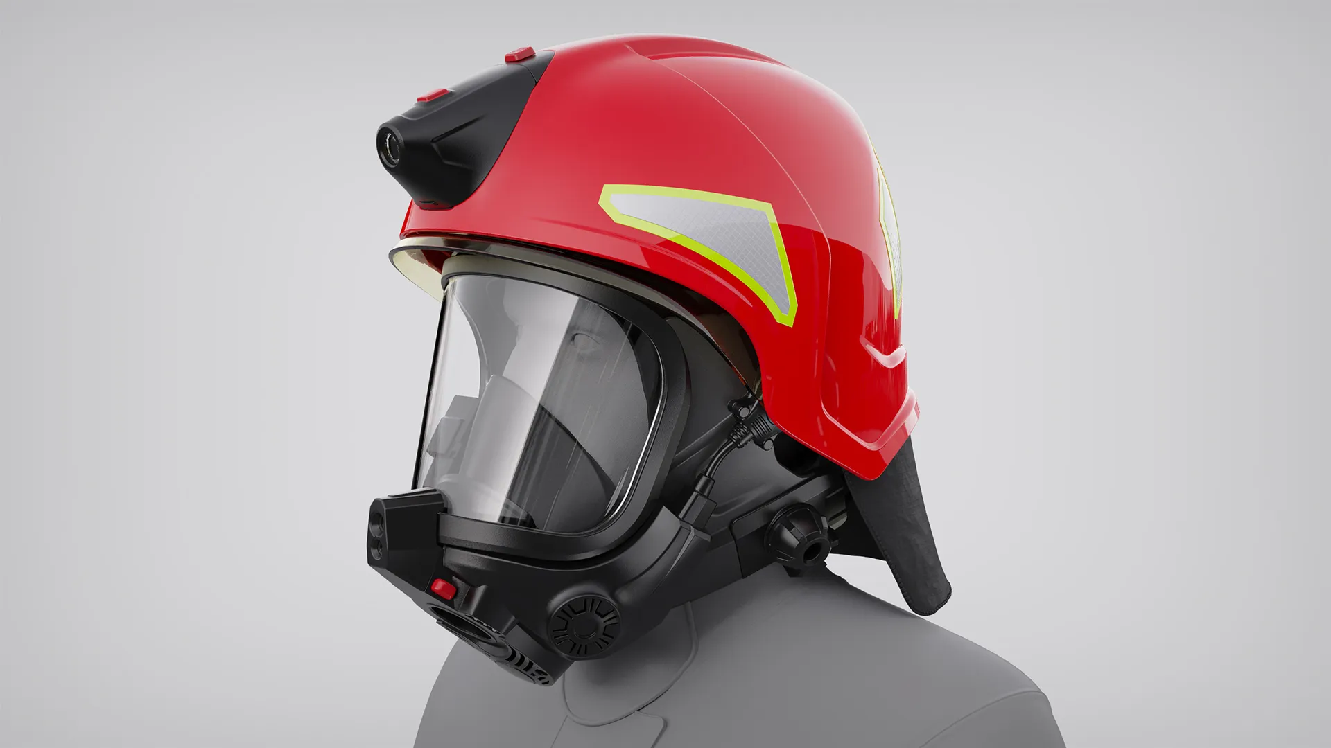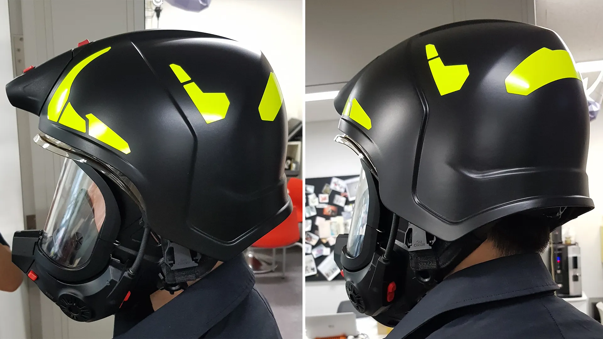 한컴라이프케어에서 개발한 스마트 소방 헬멧으로, HMD를 활용한 AR 디스플레이, 화점 및 요구조자 탐지가 가능한 EO/IR 카메라, LED 라이트, 통신 모듈 등이 내장되어 있어 보다 효율적인 소방/구조 활동이 가능하게 도와준다. This smart firefighting helmet, developed by Hancom Lifecare, is equipped with an AR display utilizing HMD, EO/IR cameras for detecting fire sources and victims, LED lights, and communication modules. These integrated features facilitate more efficient firefighting and rescue operations in critical environments.