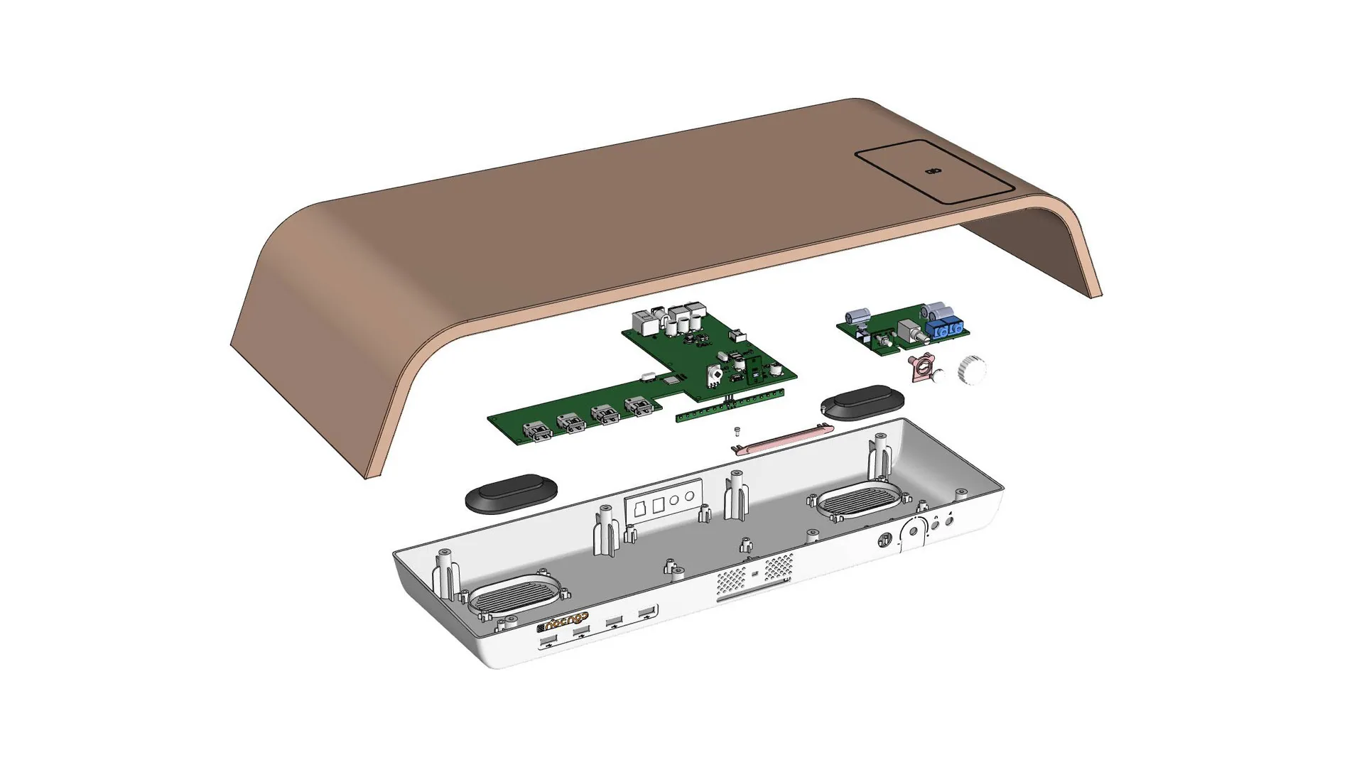 너크너크 베이스(Nocnoc Base)는 센서를 통해 사용자의 자세를 실시간으로 모니터링하여 피드백을 제공하는 스마트 디바이스이다. 사용자의 건강과 업무 효율을 위해 일정 시간 이상 휴식 없이 업무에 집중할 경우 적절한 브레이크 타임을 제안한다. 또한 스테레오 스피커, USB 3.0 허브, 고속 무선 충전 기능을 통합 지원하여 더욱 쾌적하고 효율적인 업무 환경을 조성한다. The Nocnoc Base is a smart monitor stand that utilizes integrated sensors to track the user's posture and provide real-time feedback. To enhance work efficiency and user health, it proactively suggests break intervals when it detects prolonged periods of stationary work. It further optimizes the workspace by integrating stereo speakers, a USB 3.0 hub, and high-speed wireless charging into a single device.