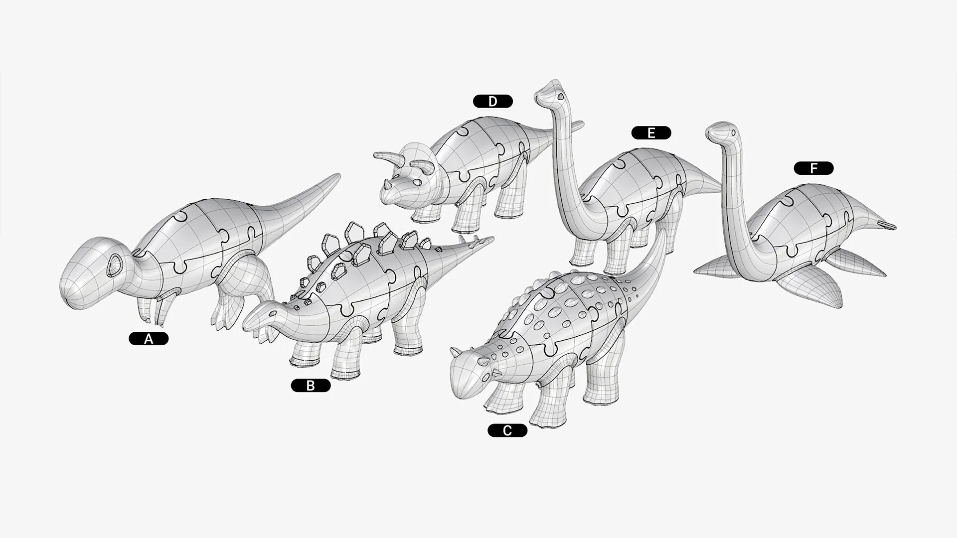 "출력해서 즉시 가지고 놀 수 있는 장난감"이라는 심플한 아이디어에서 시작된 이 프로젝트는, 서로 조합(Mix & Match)이 가능한 6가지 공룡 모델을 선보입니다.