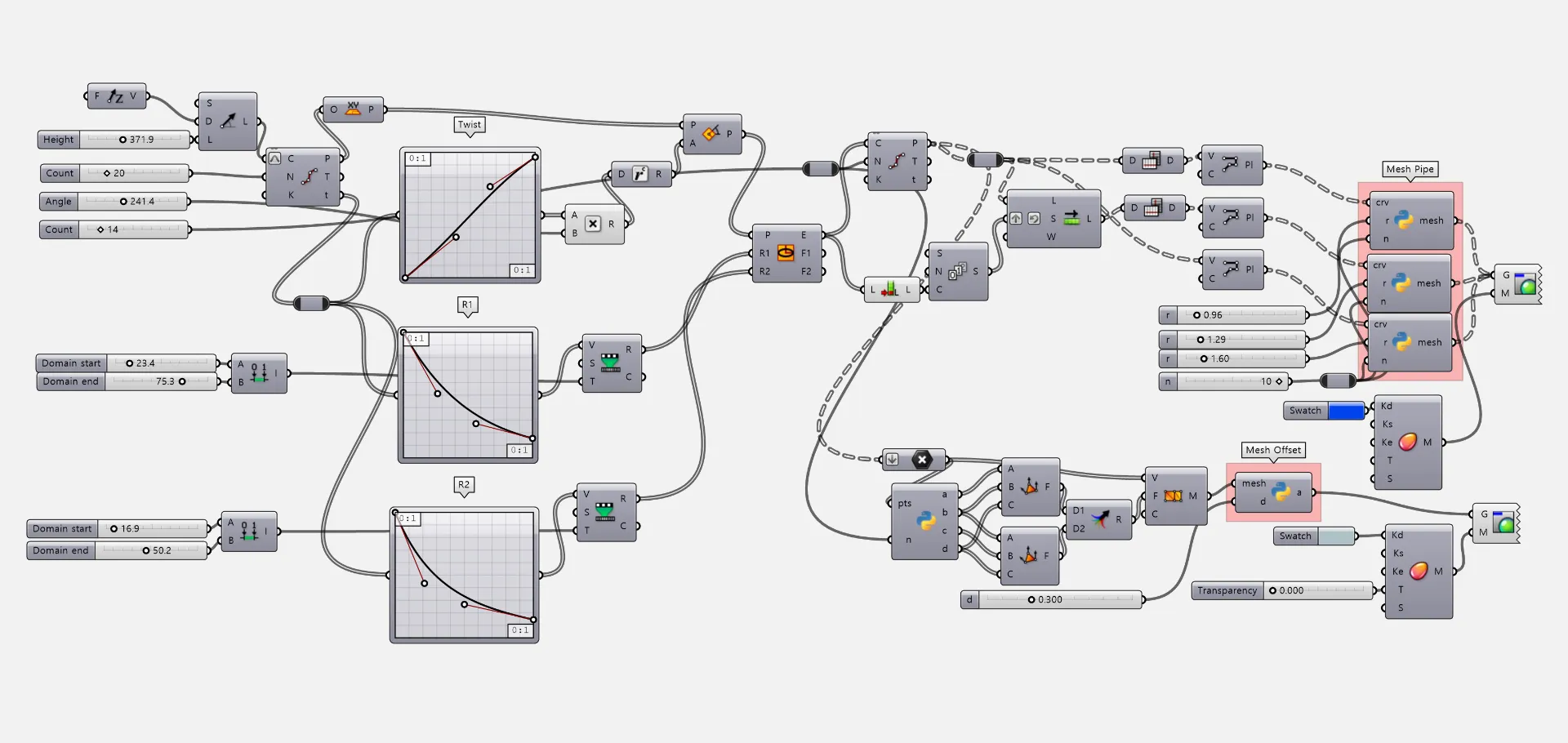 Twist tower example using mesh piping in python